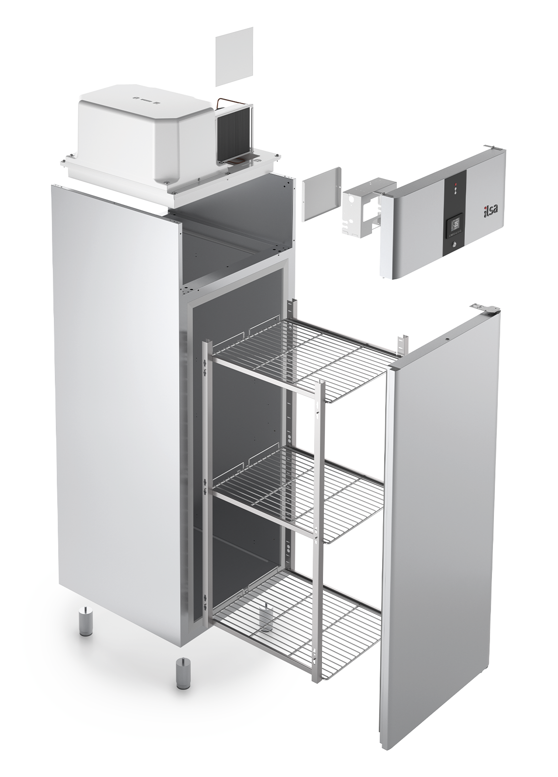 • Pieds réglables en acier inox H : 120-150 mm