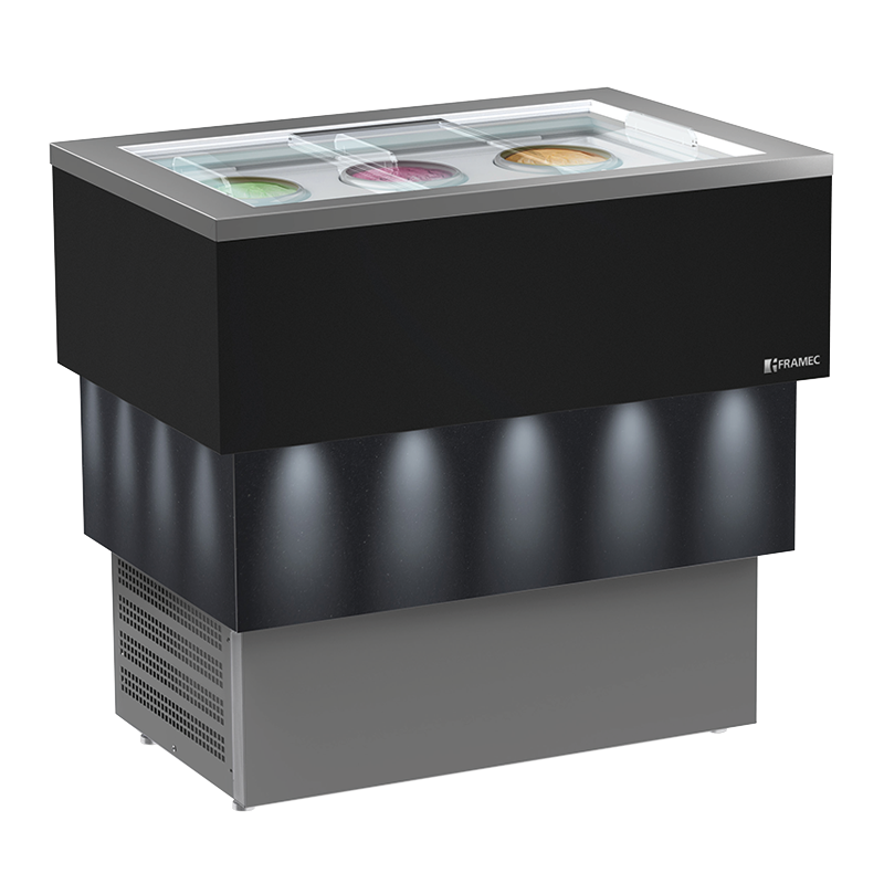 • Habillage en noir (RAL 9005) et gris avec détails en glitter, plinthe en grise
