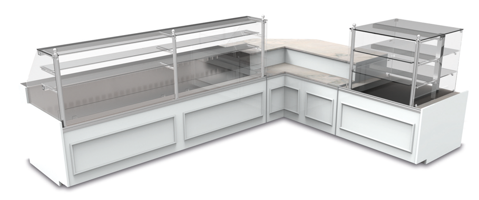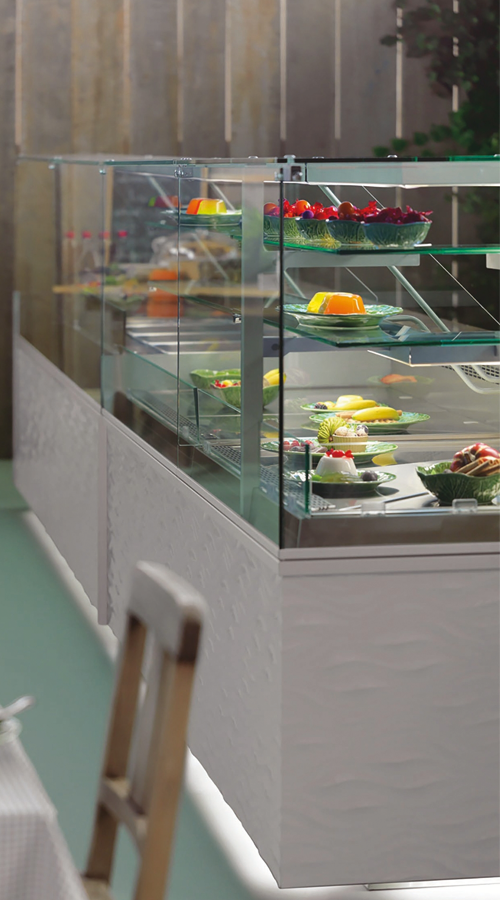 • Une gamme complète avec toutes les vitrines : neutres, chaudes, froides….