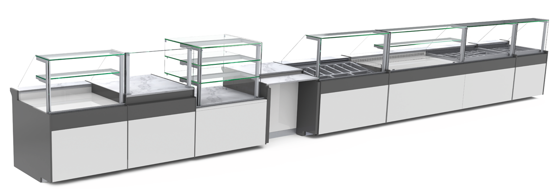 • Une large gamme de vitrines réfrigérées, chaudes ou neutres pour répondre à tous les besoins d’agencement.