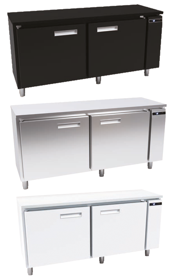 UNE TABLE RÉFRIGÉRÉE ADAPTÉE AUX MAGASINS AVEC UNE PROFONDEUR HORS TOUT DE 600 MM QUI S’ALIGNERA AUX PANETIÈRES ET AUX MEUBLES ARRIÈRE.